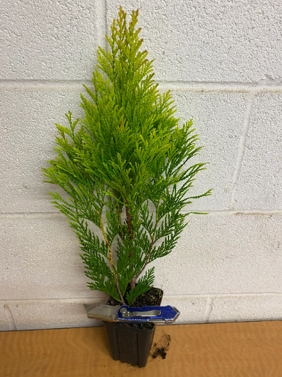 You are buying one Golden arborvitae (thuja plicata) in a 1 quart pot 8- 14" tall. Golden arb. trees make a bright privacy hedge or screen for full sun that thrives in heat and humidity. They are a popular evergreen tree that holds their color throughout the winter and tolerate drought once established. The rich golden foliage and handsome narrow form make this plant an excellent choice in a row as formal screen. Golden Arborvitae trees are a deep and rich buttery yellow color year round. Their foliage grows in flat sprays, and close up, the needles appear covered in golden scales. This selection is rapidly becoming one of the most sought after evergreens because it maintains its lush golden color during the winter. Hardy in zones 4-7 reach mature heights of 10-12" and 3-4 ft wide. We do not ship to HI, AK and Puerto Rico. We are a nursery located in middle TN cert. #2235. We send planting instructions with every order